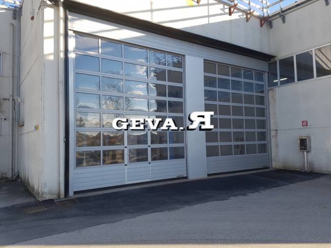 PORTONE SEZIONALE VETRATO CON PORTA PEDONALE A LATO