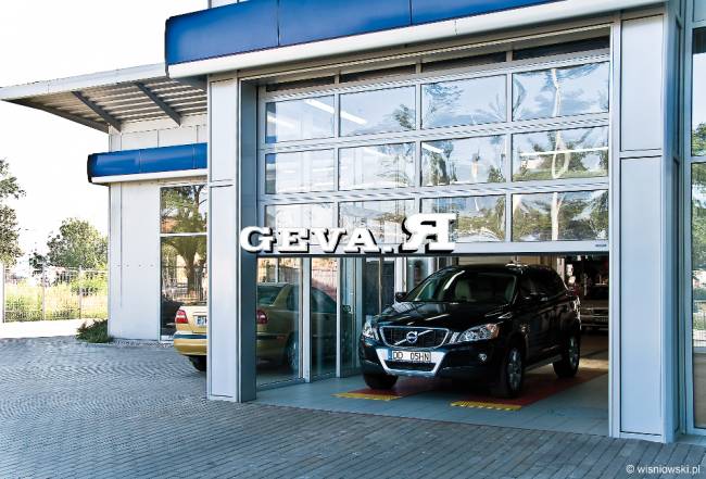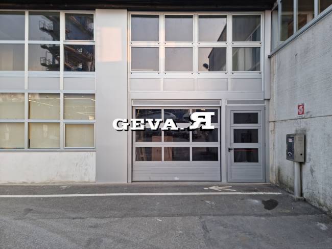 PORTONI SEZIONALI IN ALLUMINIO CON AMPIA SUPERFICIE VETRATA E PORTA PEDONALE A SOGLIA RIBASSATA